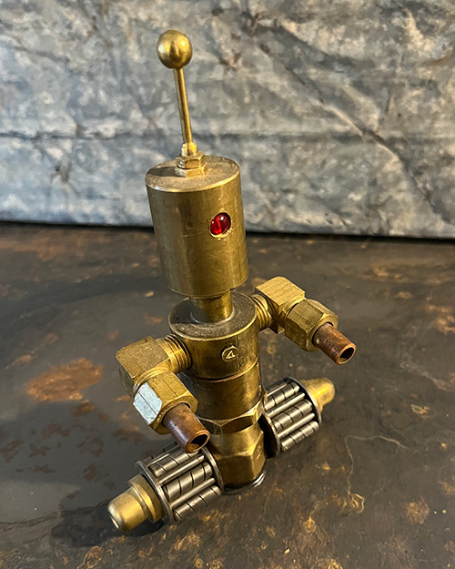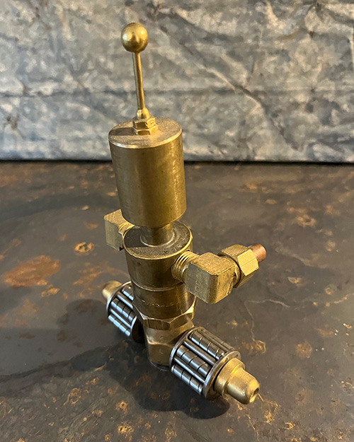 His single ruby-like eye is a jewel of perception, capturing the world in a singular, focused vision. Atop his head, the brass antenna serves not only as a conductor of ideas but also as a symbol of the frequencies through which Brasston communicates with his metallic kin.