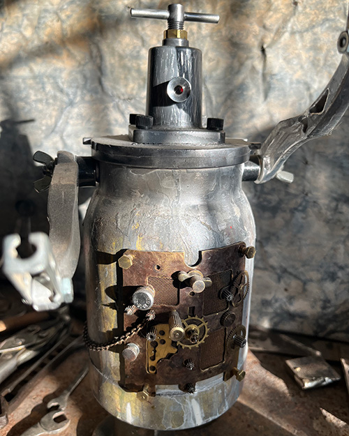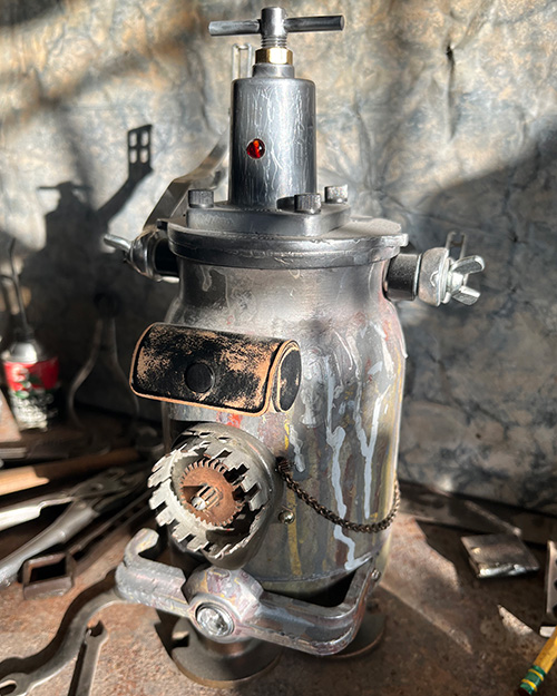 In Jasper’s assembly of mechanical marvels, Garrison Gearhart stands as a bastion of protection, embodying the strength and resilience that safeguard the sanctum of creativity and craftsmanship.