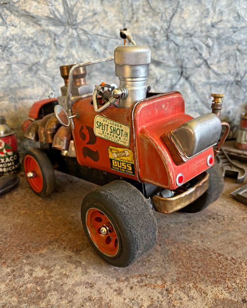 Meet Speedster Scout, the fastest and most agile of Jasper Hawthorn’s creations. With a robust engine and slick red paint job, this mechanical marvel is designed for high-speed adventures and rapid reconnaissance. Speedster Scout’s keen sensors and nimble wheels allow it to navigate through the narrowest alleyways and toughest terrains, making it an invaluable asset in any quest for discovery. Whether it’s scouting new territories or delivering important messages, Speedster Scout is always ready to roll, bringing a touch of vintage charm to modern robotics.