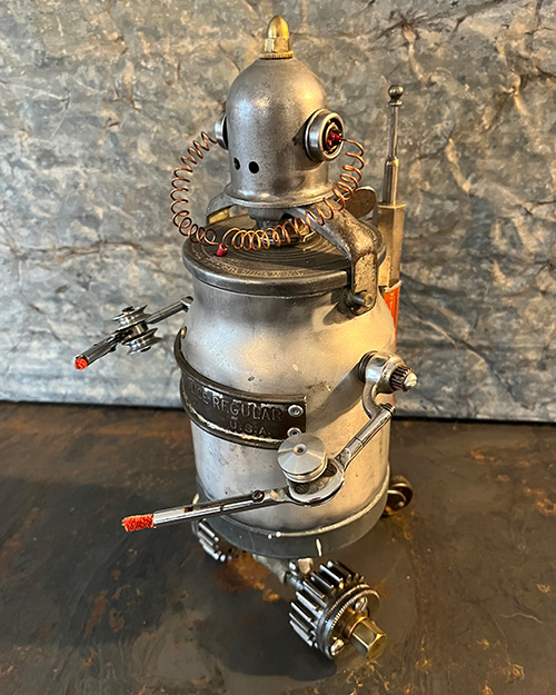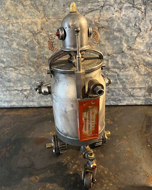 The Regulator Nomad, crafted with a balance of finesse and strength, roams the vast landscapes of metal and machinery. Its eyes, crimson like the warning lights of ancient control panels, scan meticulously for fluctuations in the current of life that flows through its domain. With a sturdy stance and a frame that resonates with the echoes of mechanical yesteryears, the Regulator Nomad stands as a guardian of continuity, ensuring that the harmonious rhythm of the mechanical world remains uninterrupted.