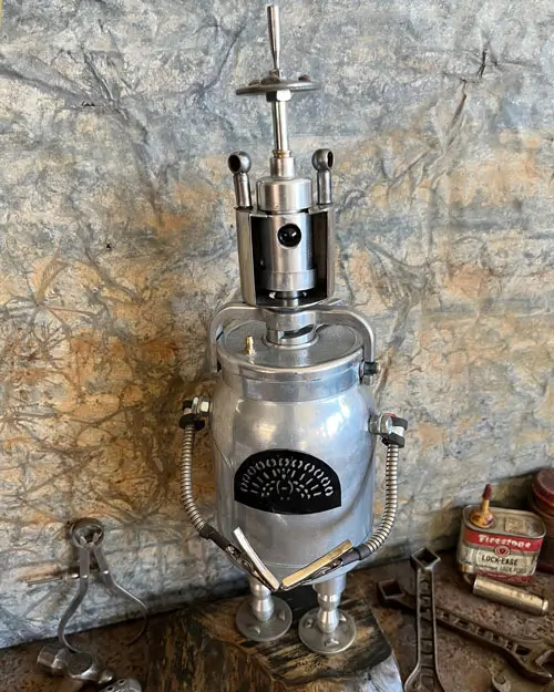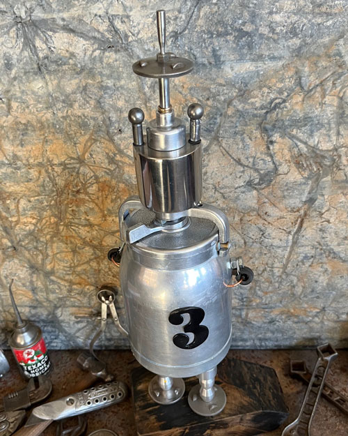 TrioVault, marked with the distinct “3” upon its chassis, is an industrious sentinel crafted from the remnants of a bygone era. It patrols the labyrinthine corridors of the machine metropolis with an air of silent authority. Its tripartite sensors scan for resources amongst the ruins, capturing the essence of lost treasures to be reclaimed and repurposed. TrioVault’s design is both an homage to resilience and a beacon of innovation, symbolizing the trinity of past, present, and future in its steadfast quest. It is a guardian of continuity, safeguarding the cyclical nature of creation, as it transforms the discarded into the indispensable.