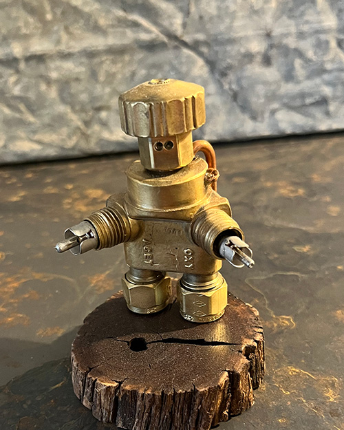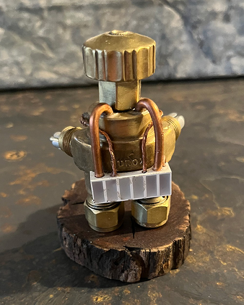 With arms crafted from precision tubing, Turbion is adept at the fine art of tinkering, adjusting, and calibrating the whimsical inventions that populate Jasper’s workshop. The ironwood base upon which he stands is like the grounding of his practical nature — a foundation from which his explorations into the mechanical wilderness begin.